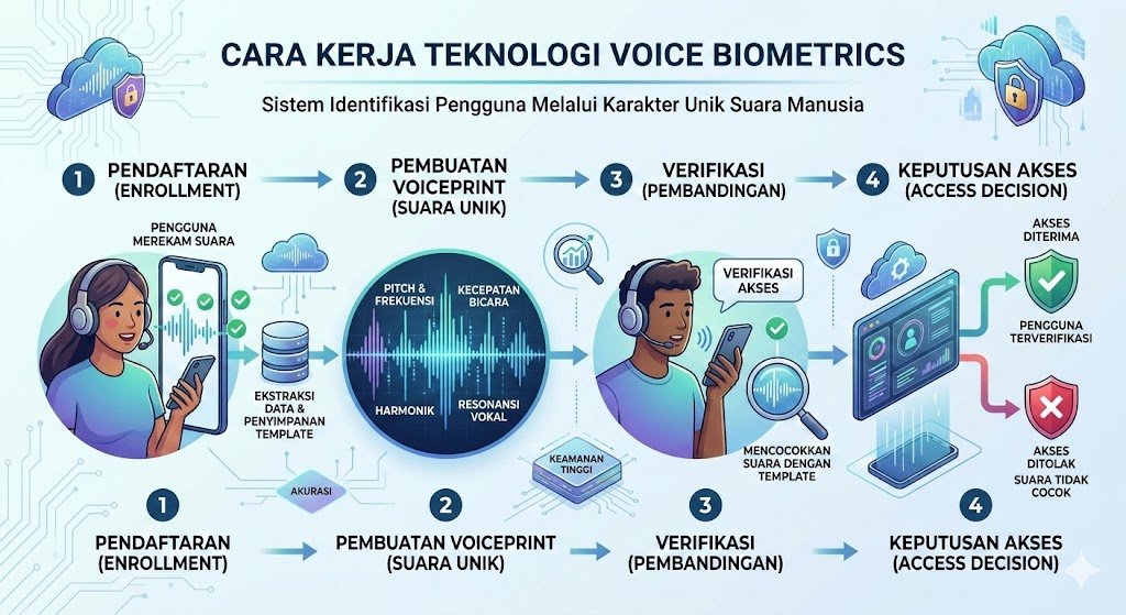 Teknologi biometrik terus berkembang pesat sebagai solusi keamanan digital yang lebih personal dan sulit dipalsukan. Salah satu inovasi yang kini banyak diterapkan di sektor perbankan hingga layanan pelanggan adalah voice biometrics atau biometrik suara. Berbeda dengan pengenalan wajah atau sidik jari, teknologi ini mengandalkan spektrum frekuensi dan pola unik yang dihasilkan oleh organ tubuh manusia saat berbicara untuk memvalidasi identitas seseorang secara akurat.